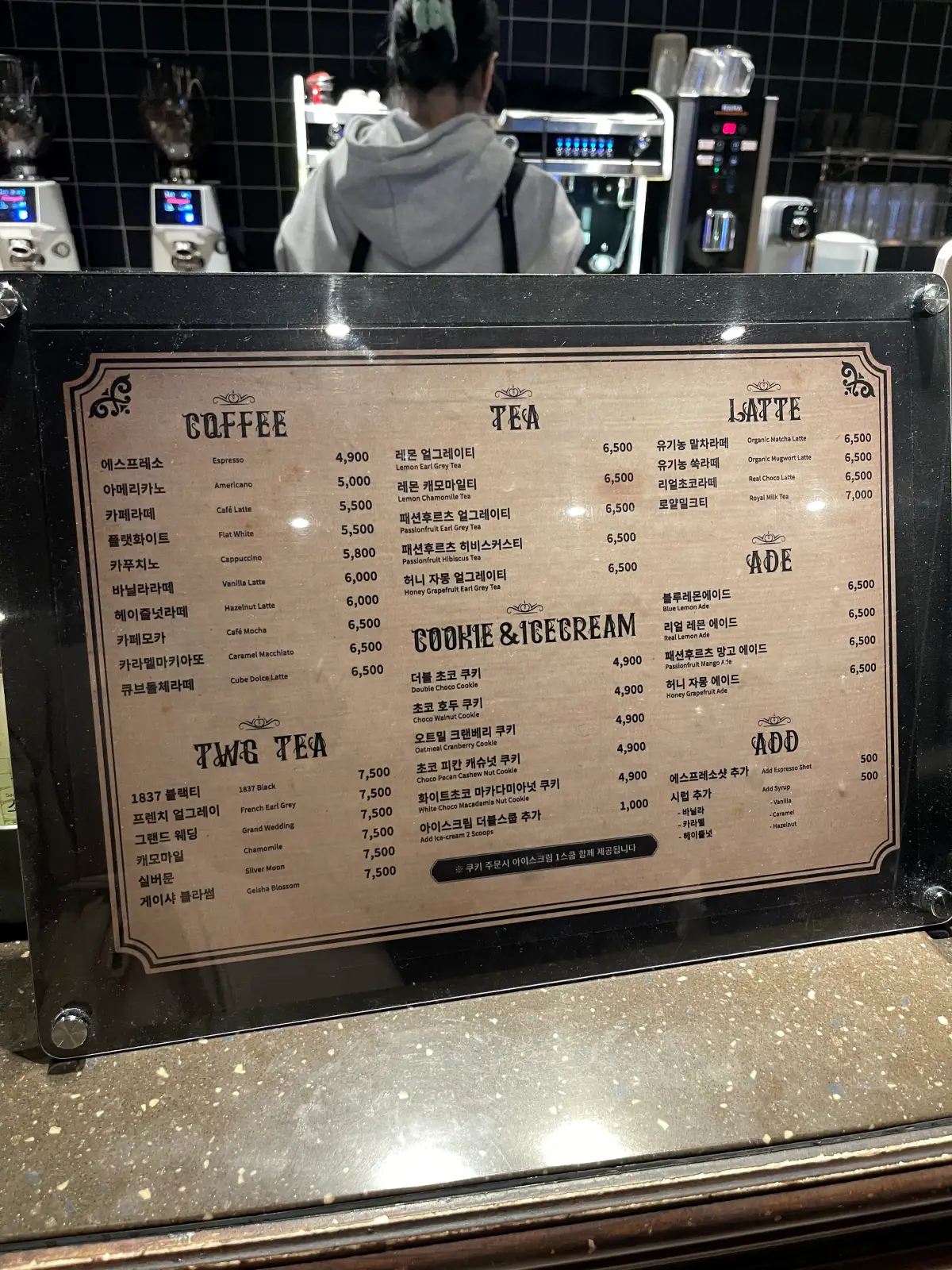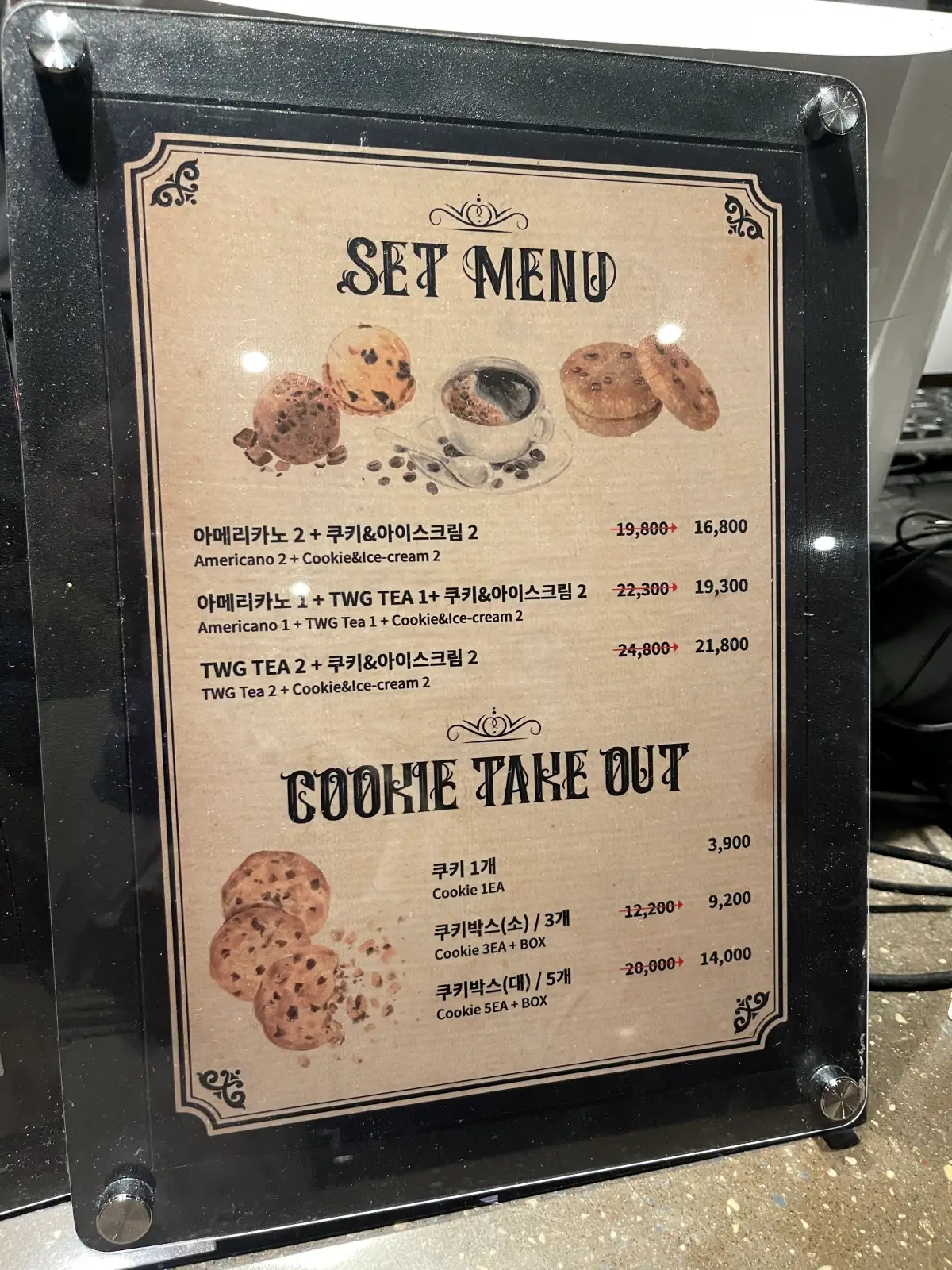 커피의 금액들은 엄청 비싸지 않은 편이었고 쿠키 아이스크림 세트도 판매하고 있어서 서울에서 이 정도 금액이면 양호하다는 판단을 내렸어요